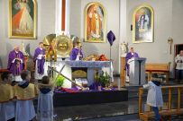 Msza święta wieczorna w środę 9 kwietnia 2025 roku była ostatnim spotkaniem z księdzem dr Tomaszem Zychem w trakcie tegorocznych rekolekcji wielkopostnych. Mszy świętej koncelebrowanej przewodniczył ksiądz rekolekcjonista Tomasz Zych z udziałem ks. Jana, ks. wikariusza Wojciecha i ks. Stanisława. Ksiądz rekolekcjonista wygłosił do wiernych Słowo Boże, mówiąc: