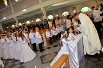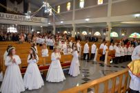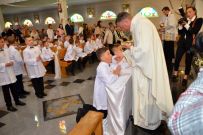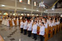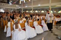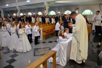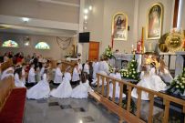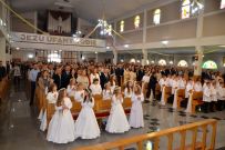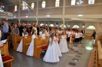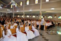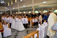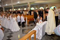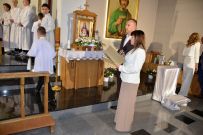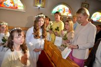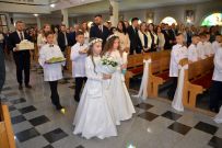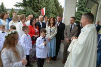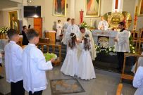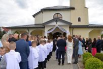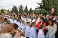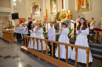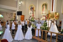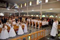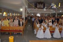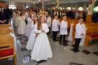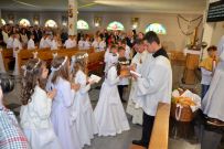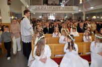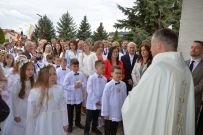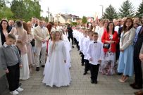 W kościele dzieciom towarzyszyły licznie zgromadzone rodziny, zaś dzieci aktywnie uczestniczyły w Eucharystii. Na zakończenie uroczystości dzieci pierwszokomunijne otrzymały od ks. proboszcza poświęcone chlebki i udały się na uroczyste obiady. Dzieci wrócą jeszcze dzisiaj do kościoła z rodzicami chrzestnymi na majówkę, na której będą modlić się w intencji rodziców chrzestnych.