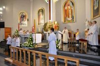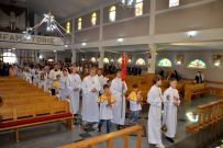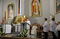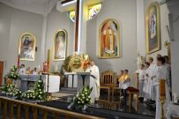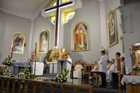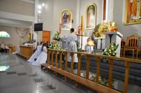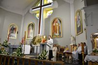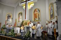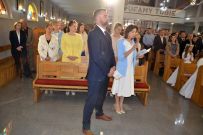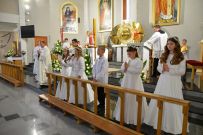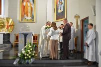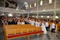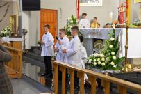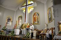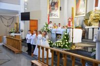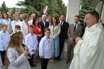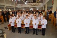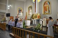 Po przywitaniu dzieci i rodziców przez księdza proboszcza Jana Zająca rodzice i rodzice chrzestni pobłogosławił dzieci. Następnie wszyscy udali się do kościoła na uroczystą Mszę świętą, której przewodniczył ks. proboszcz Jan zaś homilię wygłosił ks. Wojciech.