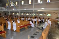 We wtorek 13 maja 2025 roku – w 108 rocznicę objawień Matki Bożej Fatimskiej i w 44. rocznicę zamachu na życie Jana Pawła II rozpoczęły się w naszej parafii procesje fatimskie po Mszy świętej o godz. 18:00. Tego dnia na nabożeństwo majowe przybyły dzieci pierwszokomunijne, które po majówce zostały na Eucharystii. Na zakończenie Mszy św. wieczornej dzieci, które dzień wcześniej po raz pierwszy przyjęły komunię świętą złożyły przyrzeczenia abstynenckie.