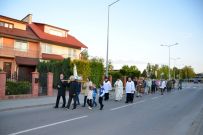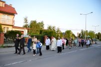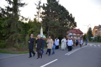 Mszy Św. wieczornej przewodniczył ksiądz Sylwester, który również wygłosił homilię.. Eucharystię koncelebrował ks. Jan i ks. Stanisław. Po Mszy św. wierni wraz z duchowieństwem z modlitwą różańcową przeszli w procesji ulicami osiedla Dzików. To, co było dla takiej procesji znakiem rozpoznawczym, to obecność figury Matki Boskiej Fatimskiej, która była niesiona przez cały czas trwania procesji, otoczona wiernymi,