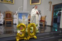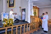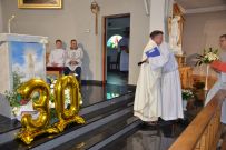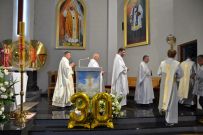 Mszy św. przewodniczył Jubilat, zaś homilię wygłosił ks. Sylwester Utnik, który powiedział: „Mija 30 lat odkąd przyjąłeś święcenia kapłańskie i odprawiłeś swoją pierwszą mszę świętą. Każda taka rocznica jest wspomnieniem powołania i słów „pójdź za mną”. To wołanie kazało Ci opuścić dom rodzinny i pójść drogą, którą wyznacza Bóg.”