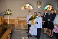 Po Mszy świętej Liturgiczna Służba Ołtarza, dzieci które obchodzą I rocznicę przyjęcia Komunii Świętej, przedstawiciel wspólnot parafialnych i rada parafialna złożyli Jubilatowi piękne życzenia i podziękowania za 30 lat kapłaństwa. Podziękowali za służbę Bogu i człowiekowi za udzielone sakramenty, za każdą odprawioną mszę świętą. Podziękowali za mądre i pouczające kazania, za liczne gesty życzliwość oraz poświęcony czas i troskę. Za piękny kościół i jego otoczenie, które zmienia się dzięki inicjatywie i pracowitości ks. proboszcza. Życzyli Jubilatowi dobrego zdrowia, siły, wytrwałości oraz otwartych serc parafian.