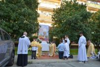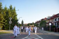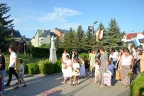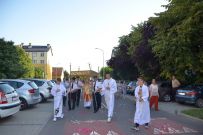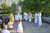 Śpiewając Litanię do Serca Pana Jezusa wyszliśmy w procesji eucharystycznej do czterech ołtarzy. Dziewczynki pięknie ubrane sypały kwiatki, zaś chłopcy dzwonili dzwoneczkami. Przed ołtarzami wierni otrzymali błogosławieństwo Najświętszym Sakramentem udzielone na cztery strony świata – jako znak Bożej opieki nad całą wspólnotą. Po procesji i powrocie do świątyni ks. proboszcz Jan dokonał poświęcenia przyniesionych ziół, kwiatów i bukietów - symbol ludzkiej pracy, wdzięczności i błogosławieństwa plonów, a następnie odmówił modlitwę błogosławieństwa nad dziećmi. Następnie kapłani udzielali najmłodszym parafianom indywidualnego błogosławieństwa.