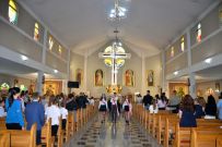 Na Mszy św. dziękczynnej pragnęliśmy podziękować Panu Bogu za ten rok szkolny, który dzisiaj kończymy – powiedział ks. proboszcz. W wygłoszonym Słowie Bożym ks. Sylwester prosił by czas wakacji był dla wszystkich czasem błogosławionym. Życzył aby ten czas wakacji był dla nich szczęśliwy, aby pełni otwartości dla Pana Boga i drugiego człowieka mogli także w tym czasie dawać piękne świadectwo swojej wiary i swojej miłości do Pana Boga i drugiego człowieka.