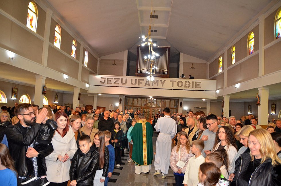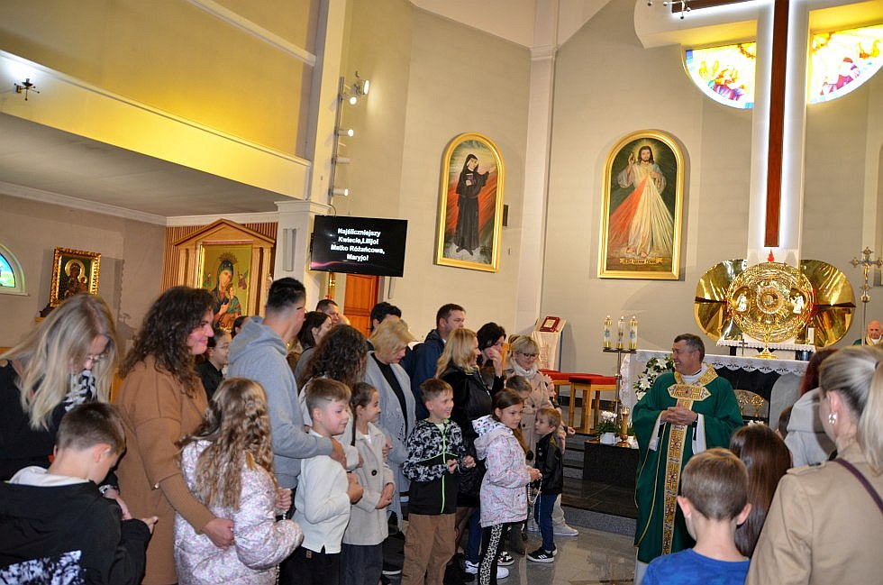 Ksiądz proboszcz Jan na zakończenie Mszy św. poprosił rodziców by wyszli na środek kościoła wraz ze swoimi dziećmi. Po modlitwie specjalnej modlitwie ks. proboszcz pokropił wodą święconą różańce, które następnie rodzice wręczyli swoim pociechom. Błogosławieństwo różańców to dla dzieci ważny znak i gotowość, by poprzez modlitwę przygotować swoje serce na przyjęcie Jezusa w Eucharystii.