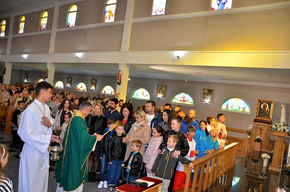 Dlatego w niedzielę 5 października 2025 roku dzieci przygotowujące się do Pierwszej Komunii Świętej uczestniczyły wraz z rodzicami we Mszy św. o godz. 10:00, w czasie której zostały pobłogosławione różańce, by dzieci mogły na nich lepiej się modlić, tak jak prosiła o to Matka Boża.
