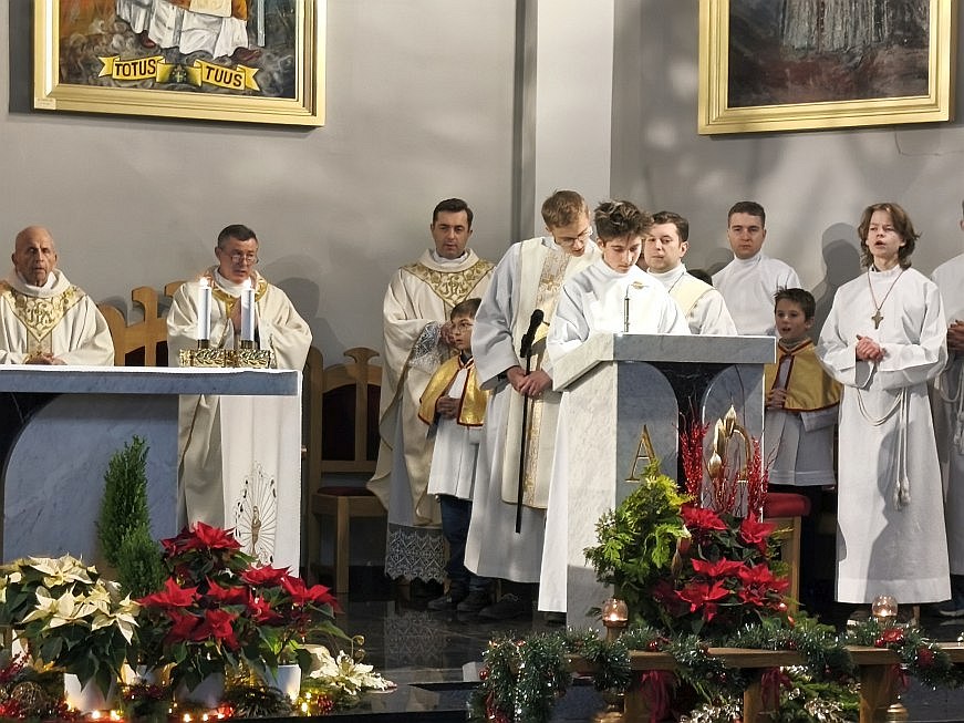 Mszy Świętej Pasterskiej, o godzinie 24:00, przewodniczył ks. proboszcz Jan z udziałem ks. Wojciecha i ks. Stanisława.