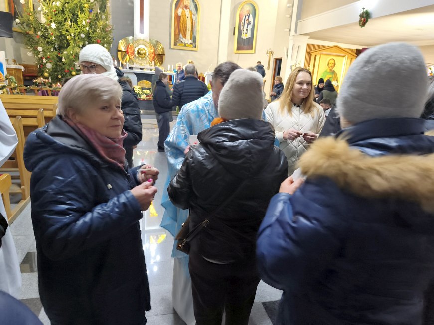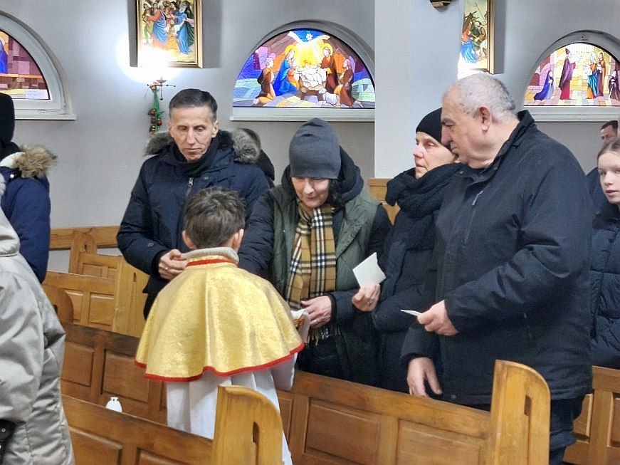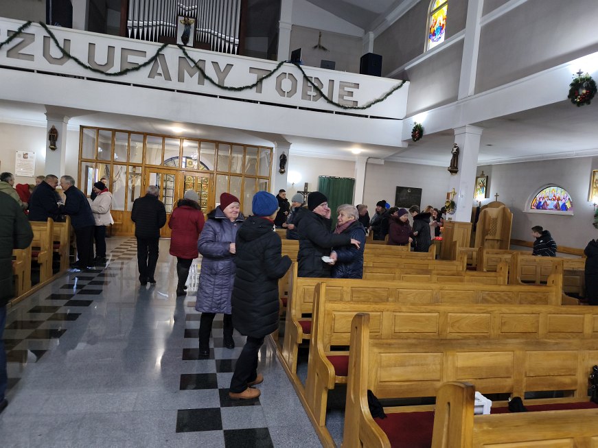 Po Mszy św. w ten szczególny dzień wszyscy otrzymali od ministrantów opłatek, po czym nastąpiło radosne, serdeczne i piękne składanie sobie nawzajem życzeń świątecznych i noworocznych. Wcześniej podczas Mszy św. ks. proboszcz Jan Zając podziękował harcerzom, za przyniesienie do naszego kościoła światełka betlejemskiego, byśmy mogli zabrać go do naszych domów i zapalić świecę na stole wigilijnym.