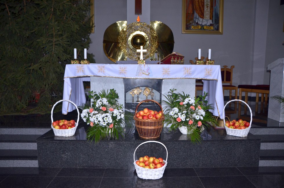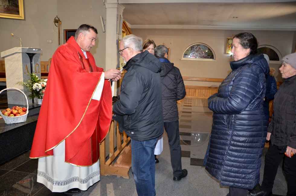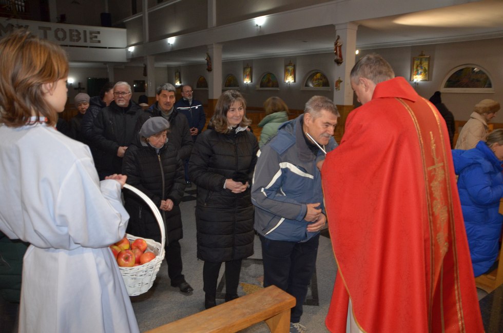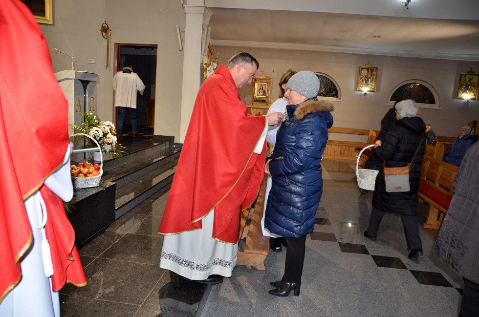 Na Mszy św. wieczornej ksiądz Wojciech najpierw poświęcił jabłka, które leżały w koszach przed ołtarzem i jabłka, które wierni przynieśli do kościoła. Zjedzenie poświęconych jabłek ma zapobiec chorobom gardła. Poświęcone w dniu św. Błażeja jabłka dawano również zwierzętom, głównie bydłu, owcom i kozom. Nazywano je jabłkami błażejkowymi i trzymano oddzielnie od innych niepoświęconych jabłek.