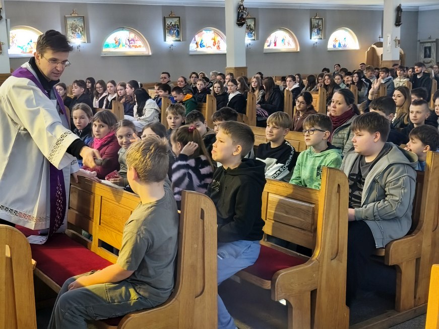 W poniedziałek 23 marca 2026 r. o godz. 10.00 została odprawiona Msza św., w której udział wzięli uczniowie klas od IV do VIII Szkoły Podstawowej Nr 9, nauczyciele i opiekunowie. W wygłoszonej w trakcie Mszy św. nauce rekolekcyjnej ks. rekolekcjonista Konrad Fedorowski wspólnie z uczniami analizował znaczenie wyrazu „rekolekcje” jak i znaczenie rekolekcji w życiu człowieka. Mówił o rekolekcjach jako o czasie spotkania z Panem Jezusem, który jeśli będzie dobrze przeżyty pozwoli Mu poukładać na nowo nasze życie.