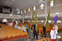 W Niedzielę Palmową 24 marca 2024 roku na każdej Mszy św. miało miejsce błogosławieństwo palm wielkanocnych przyniesionych przez wiernych do kościoła a po Mszy św. o godz. 11:30 odbyła się procesja z palmami wokół kościoła. Kapłani ubrani byli w czerwone szaty a procesja miała charakter tryumfalny. Te kolorowe, często ręcznie wykonane palmy, były nie tylko piękną dekoracją, ale także symbolem triumfu Jezusa Chrystusa nad śmiercią.