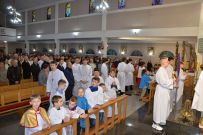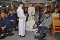 Po homilii wygłoszonej przez ks. proboszcza Jana Zająca, ksiądz proboszcz dokonał obrzędu obmycia i ucałowania stóp dwunastu mężczyznom. To zwyczaj na pamiątkę gestu Chrystusa (wyraża prawdę, że Kościół, tak jak Chrystus, jest nie po to, żeby mu służono, lecz aby służyć).
